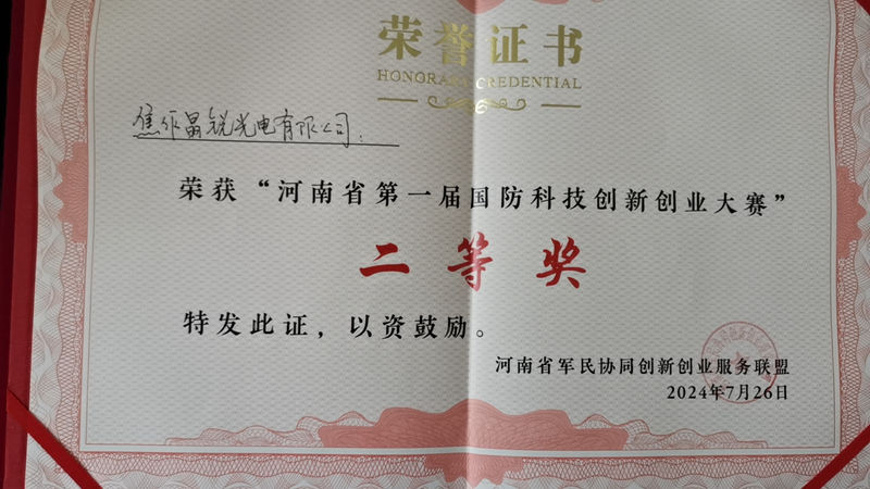 焦作晶銳光電有限公司榮獲河南省第一屆國防科技創(chuàng)新創(chuàng)業(yè)大賽二等獎(jiǎng)